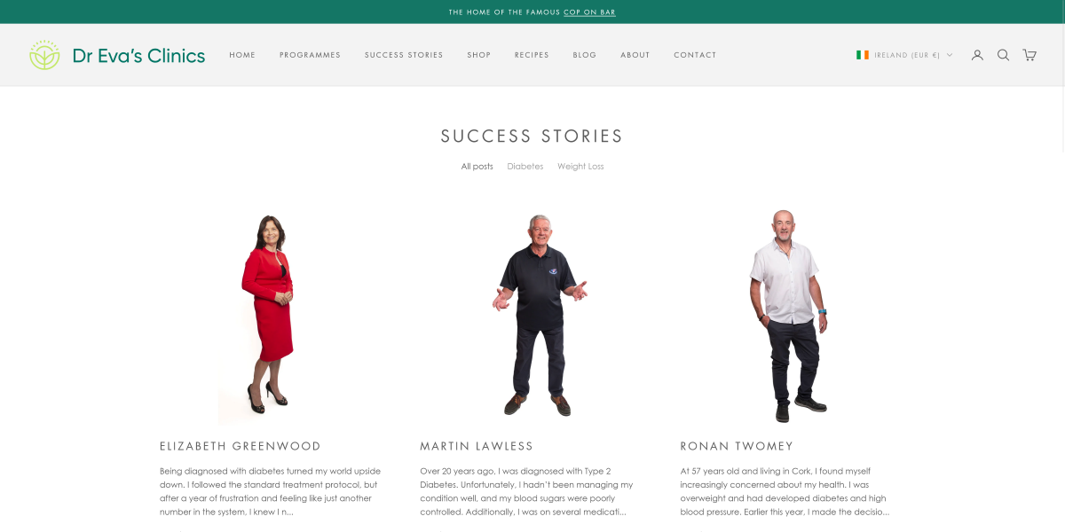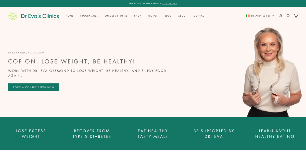 We were summonsed to a meeting, and we were grilled like never before. We had to spend a long afternoon explaining that you could have blog posts in Shopify, you could edit your own pages in Shopify, you could upload PDFs to Shopify, etc. We must have said the right things as the next day we got the go ahead to migrate Dr Eva’s Clinics webpage from WordPress to Shopify and of course to add a shop and other functionality.